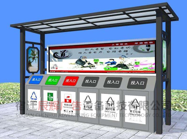 垃圾分類亭一般放在小區或者公共的地方集合垃圾之用。同樣的材料也可制成配電房、報亭、崗亭、景區休息室等。宿遷辰輝廣告設備科技有限公司,我們的產品豐富多元化,應用場景廣泛,也可以根據客戶的需要來圖定做。